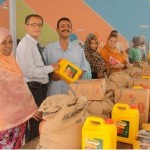 Constitué d’un ratio composé de riz, de sucre, de pâtes et d’huile, les bénéficiaires de cette dotation sont au nombre de 750 familles, ce ramadan 2013.